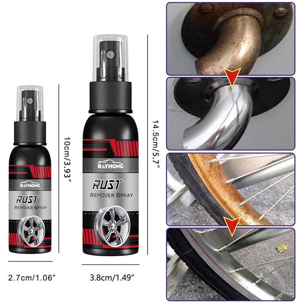 Don’t worry! Our "Car rust removal spray" will help you solve the problem easily. Great for rust from tools, metals, cast iron, car parts, etc.